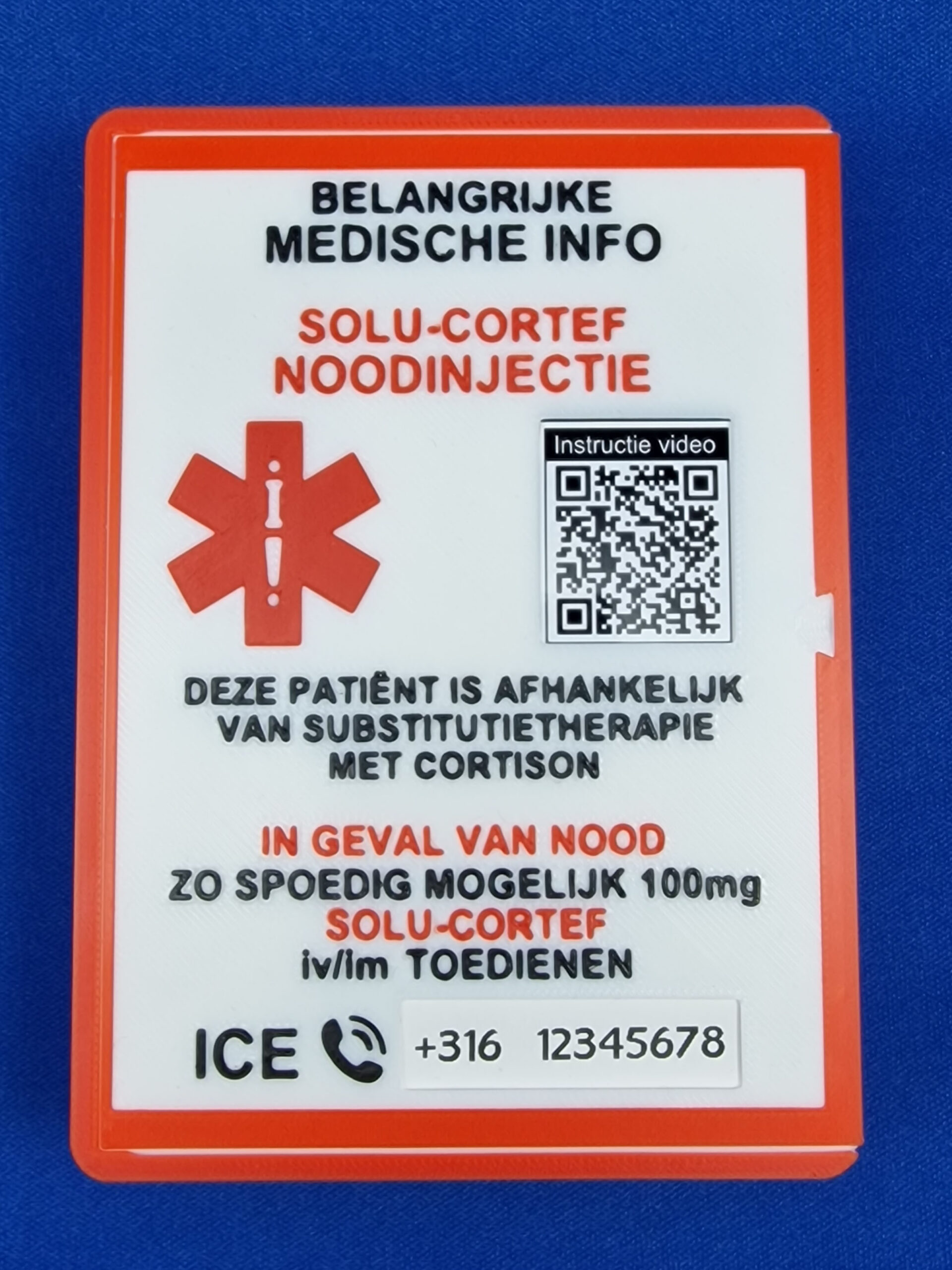 Het biedt een goed overzicht van alle benodigde materialen voor het zetten van de noodinjectie als mede een prik instructieformulier.