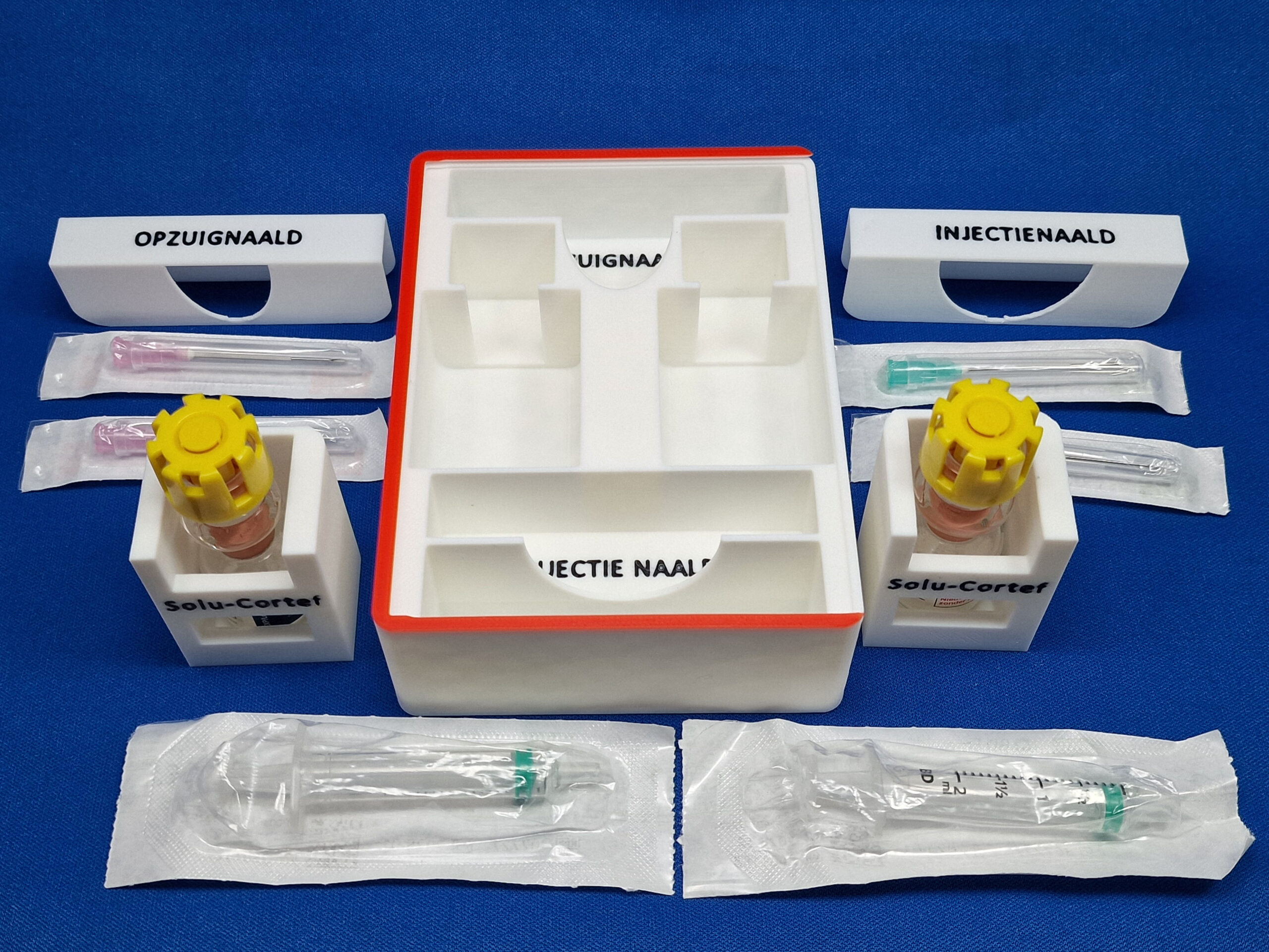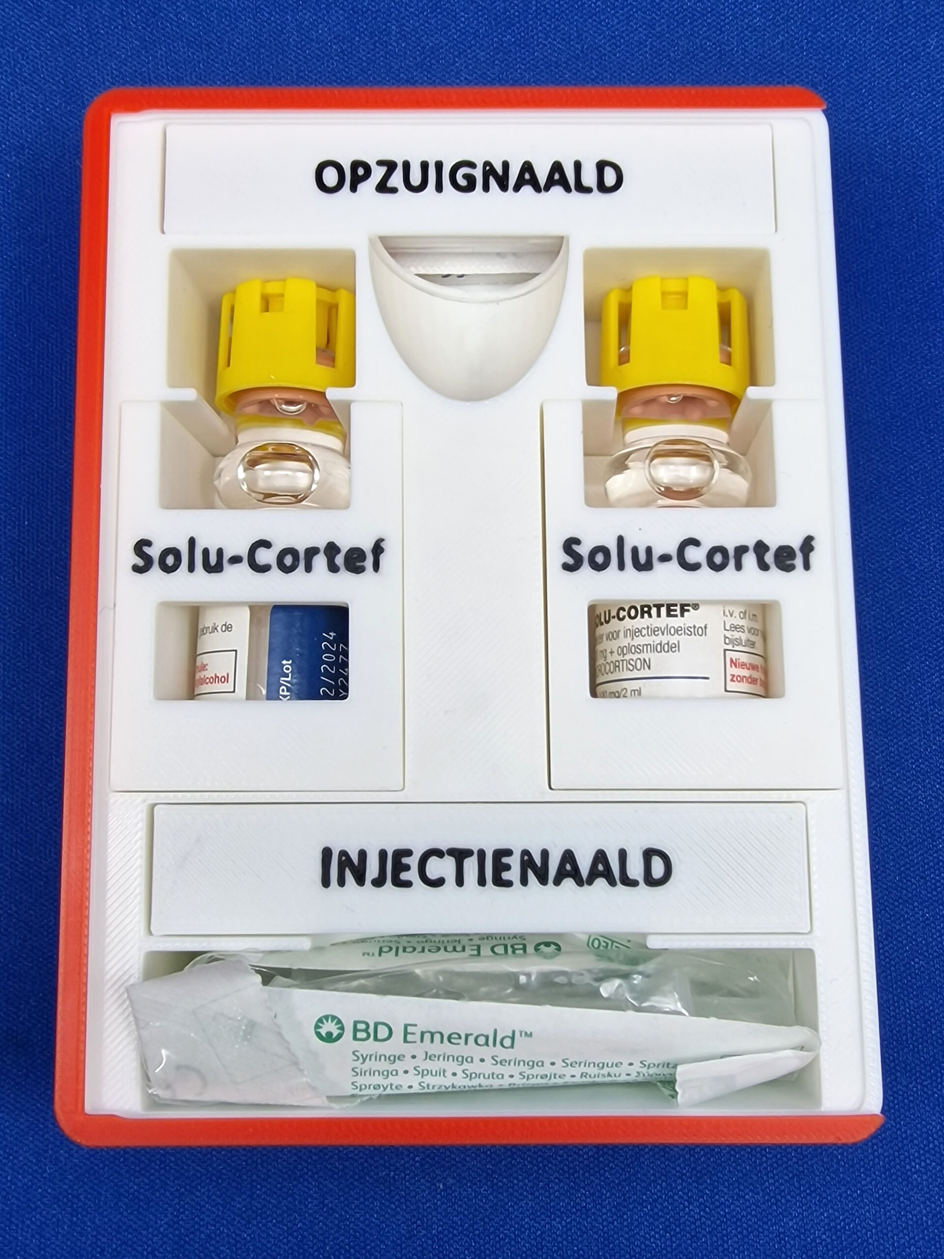 Met twee spuitjes in het onderste vak is de noodinjectie-set compleet.